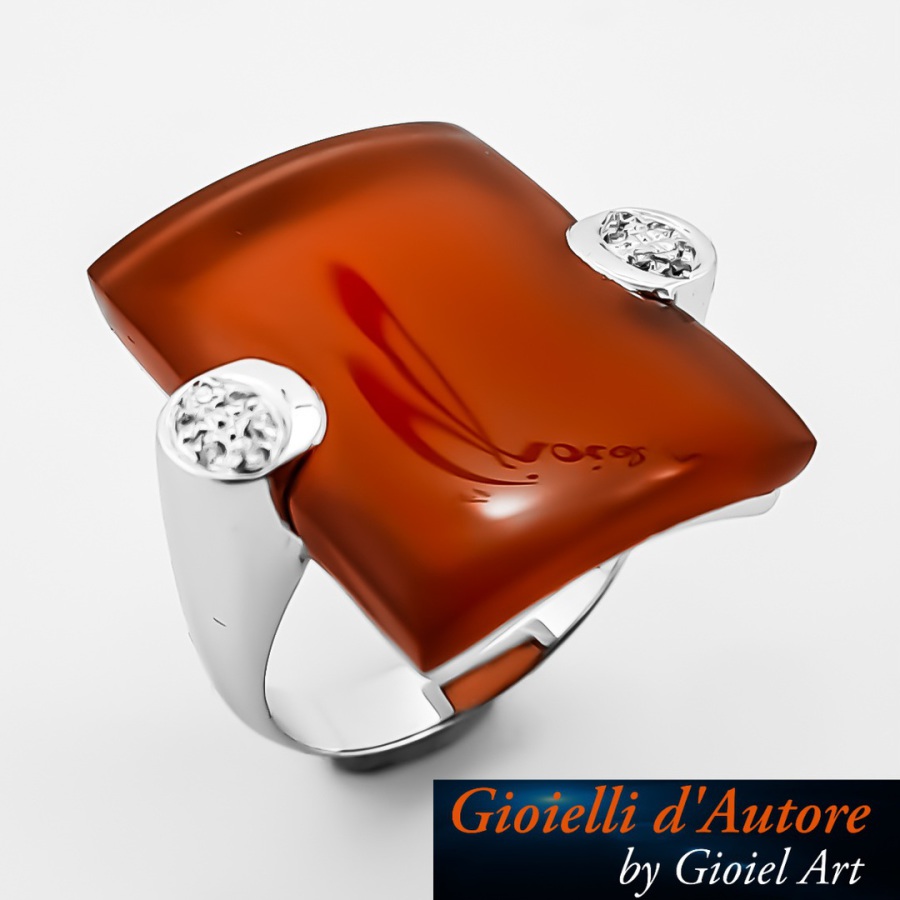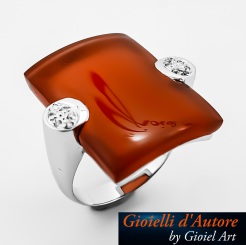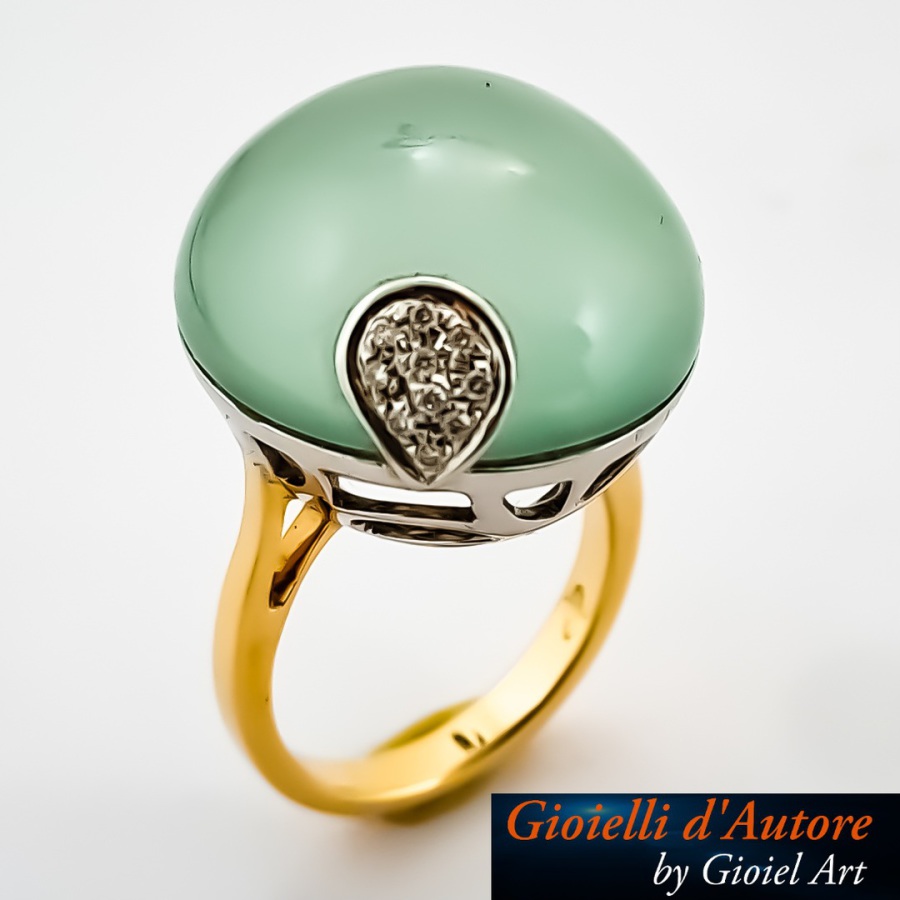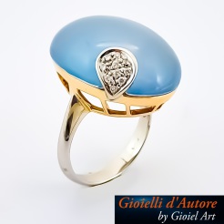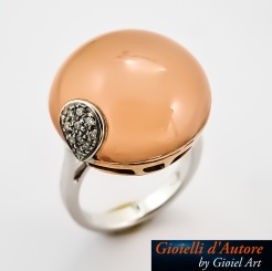 Oro bianco e rosso, calcedonio flat con madreperla e diamanti bianchi