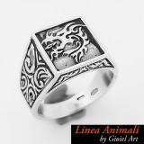 Anello a Scudo Quadrato con Drago