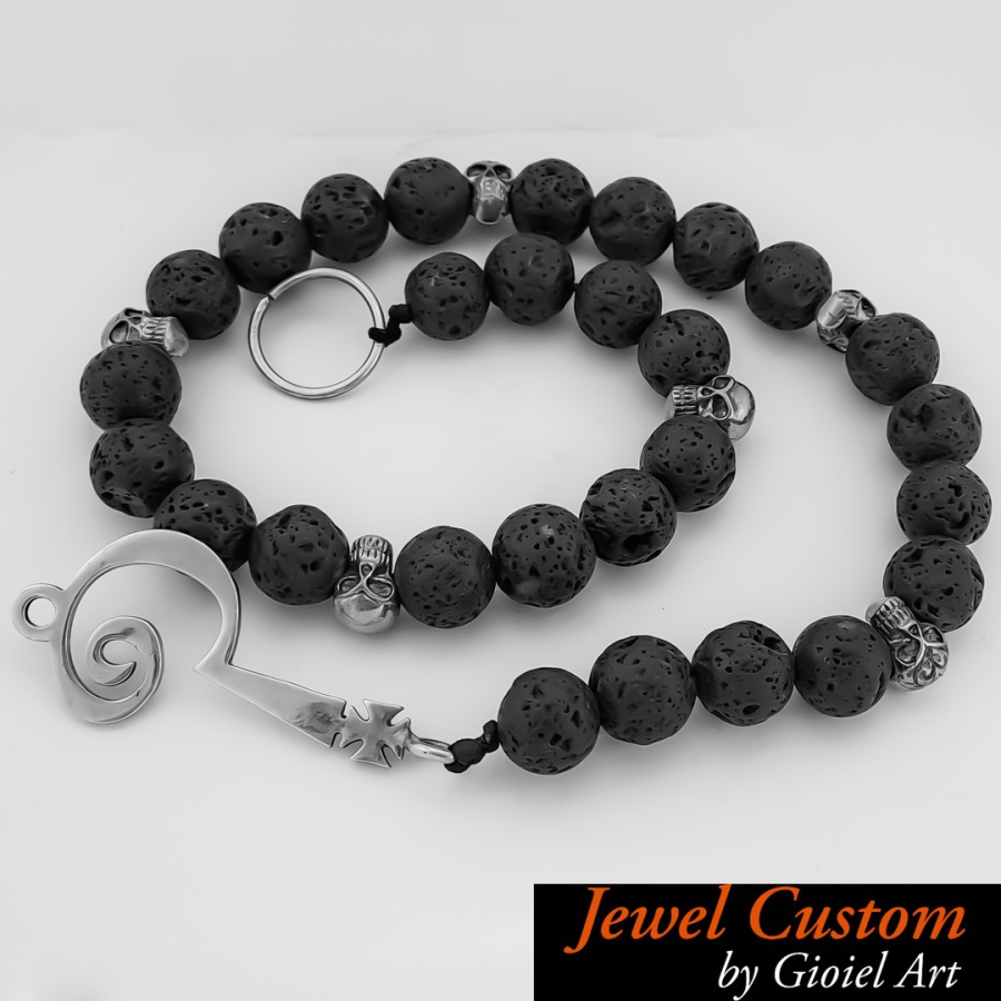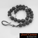 Catena da portafoglio in argento 925 con lavorazione vintage e palline di pietra lavica;