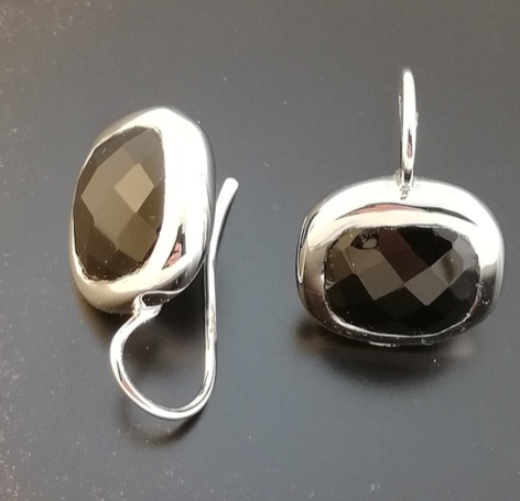 Orecchini in argento 925 con agata bianca naturale incassata.